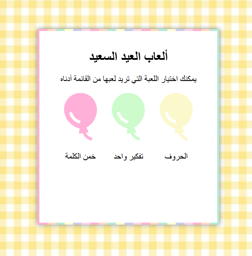 This project offers a collection of fun games designed for families and friends to enjoy together during Eid. It brings laughter, friendly challenges, and joyful moments in a festive and playful atmosphere.
