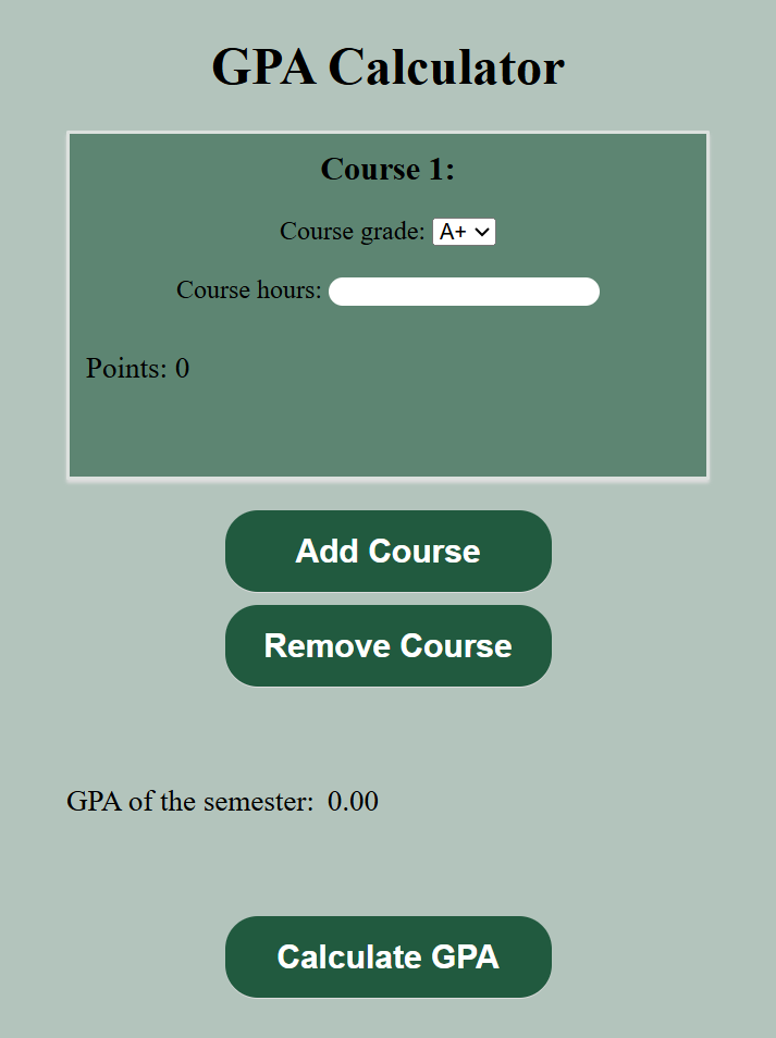 This project is a GPA Calculator for a 4.0‑scale semester, designed to help students calculate their GPA quickly.